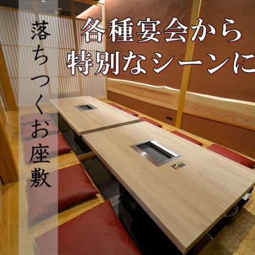 2名様~4名様でご利用いただけるお座敷の掘りごたつ個室。扉・壁のある完全個室なので、周囲を気にせずリラックスしてお寛ぎいただけます。デートやお子様連れのご家族様にオススメのお部屋です。